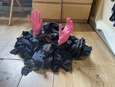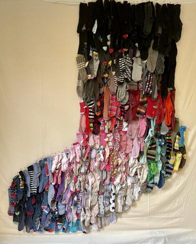 Odd socks is a theme I have returned to three times, creating installations from donations of odd socks and inviting audiences to add to the visual pieces with their stories about their own odd socks. I do find this a universal theme, where do all our odd socks go? does the washing machine eat them?